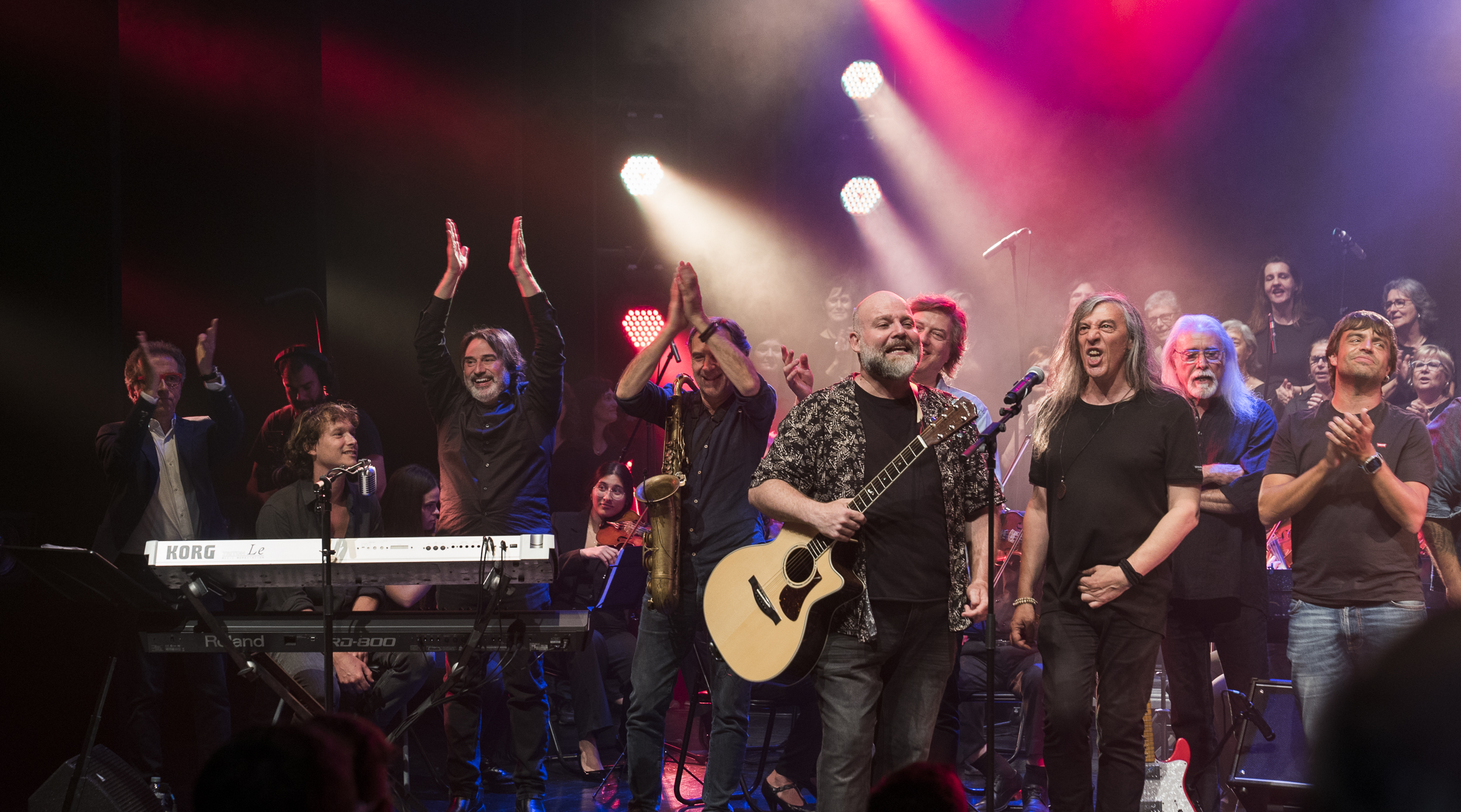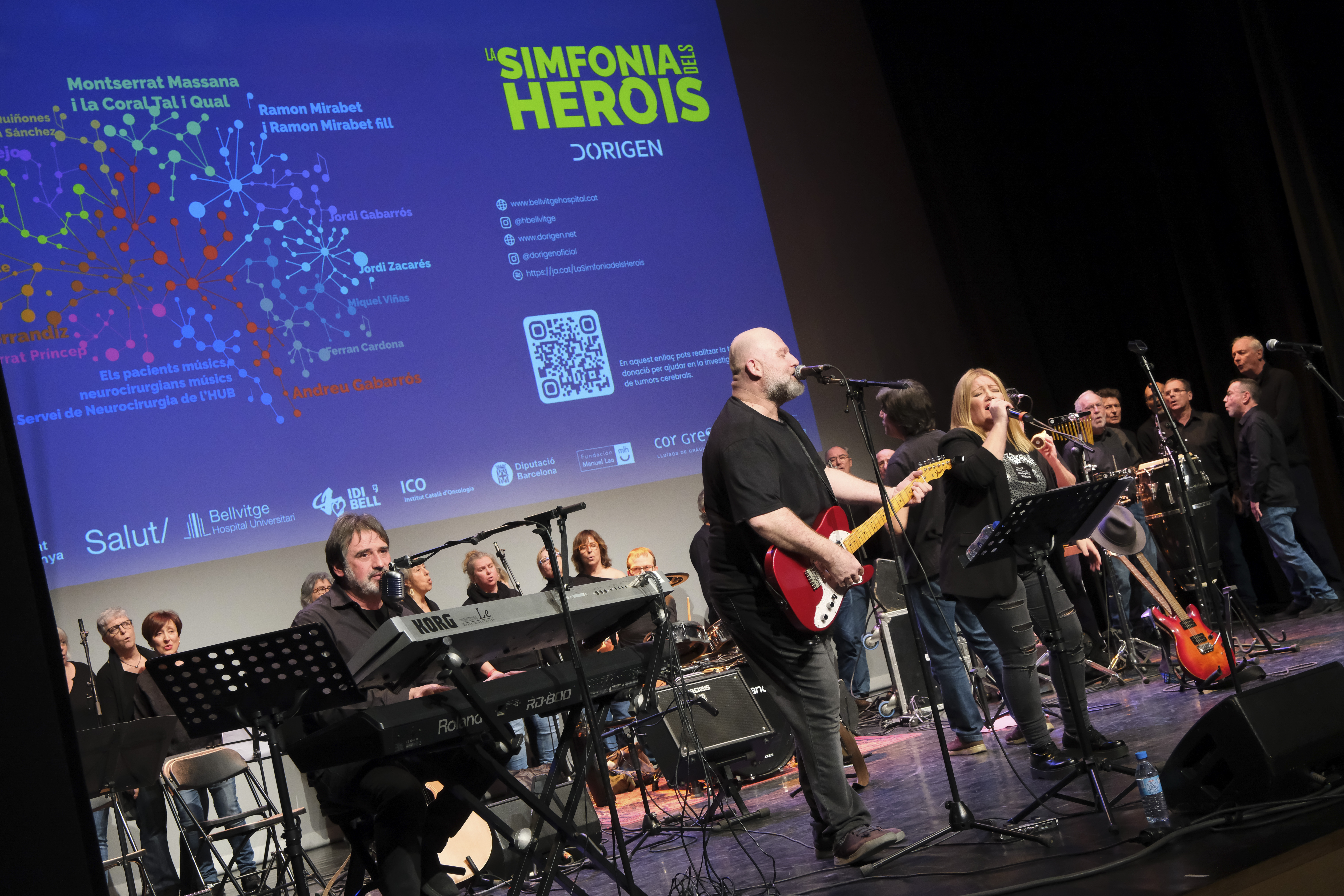 El Teatre Margarida Xirgu de Montornès ha presentat un ambient de gala pel retorn dels DORIGEN. Un any després d’haver-hi estrenat ‘La simfonia dels herois‘, han repetit el concert acompanyats de l’Orquestra ARS MÈDICA del Col·legi de metges i el Cor Gregal dels Lluïsos de Gràcia, amb més de 80 d’artistes sobre l’escenari.
