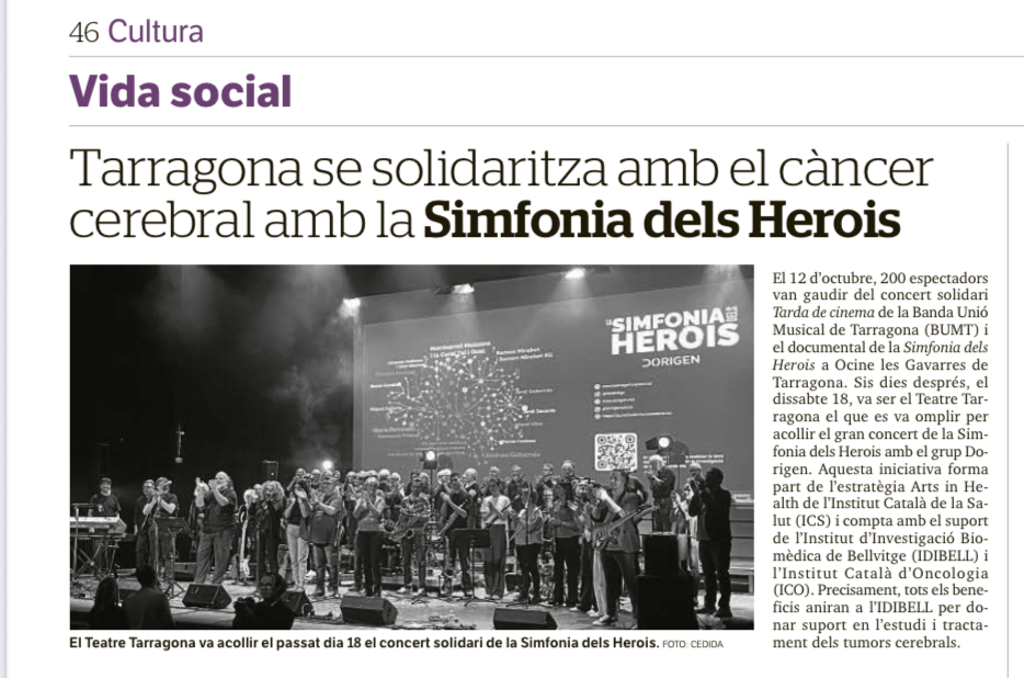 LA SIMFONIA DELS HEROIS és un projecte alineat amb l’estratègica de l’Institut Català de la Salut de “Arts in Health“ i té el suport de l’IDIBELL i de l’Institut Català d’Oncologia (ICO).