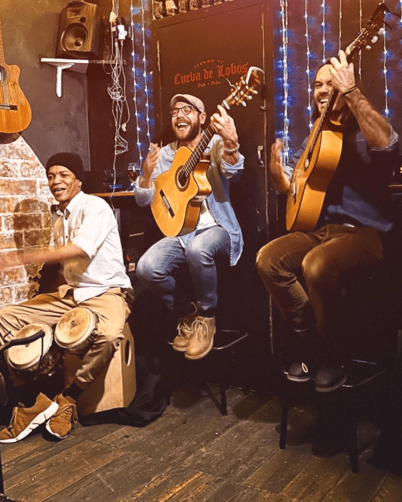 Su repertorio contiene versiones de grupos de hoy y de ayer como Gipsy Kings, Estopa, Peret, Rosario, C-Tangana, Los Delincuentes, La Cabra Mecánica, Camarón y muchos más.