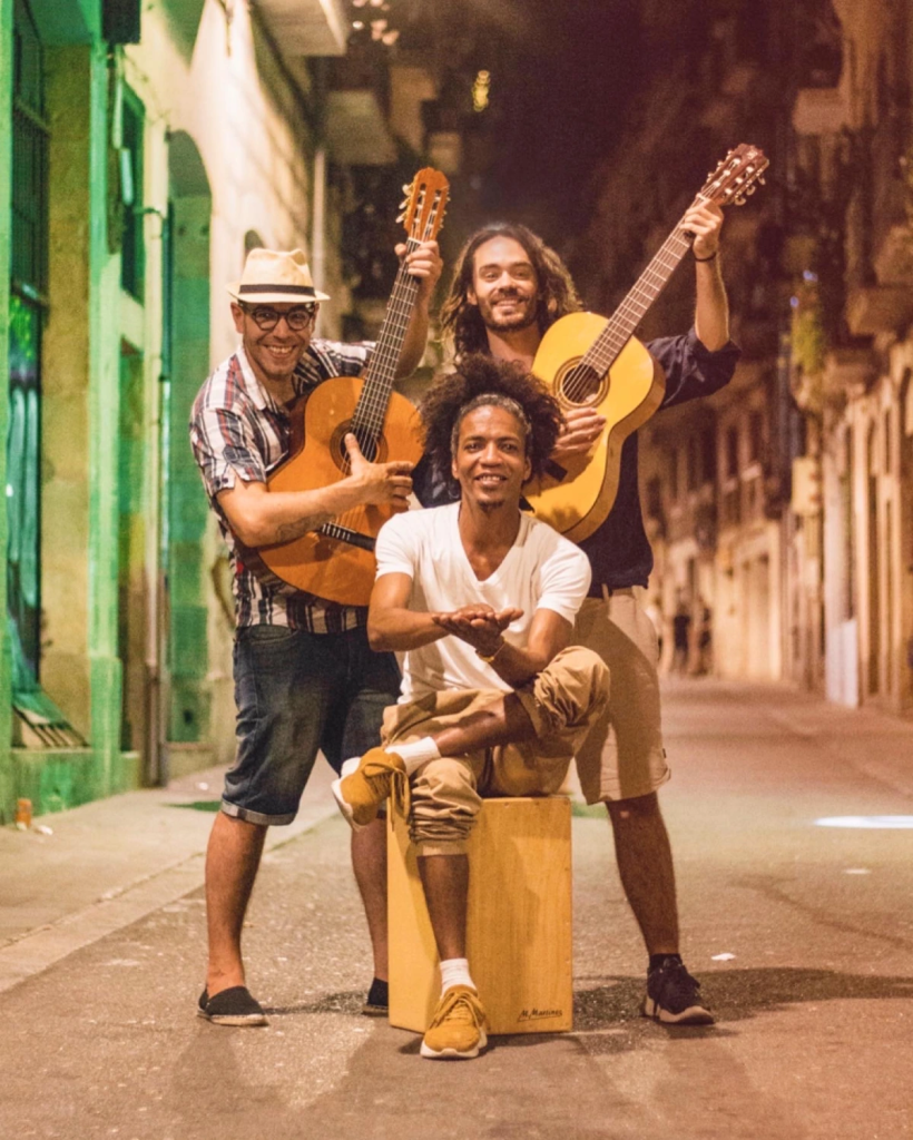 SON D BARRI suena a tres voces: la voz rasgada y agitanada de Alberto combina a la perfección con la voz dulce y catalano-andaluza de Artur, que junto al sabor latino y cubano de Williams hace una combinación explosiva.